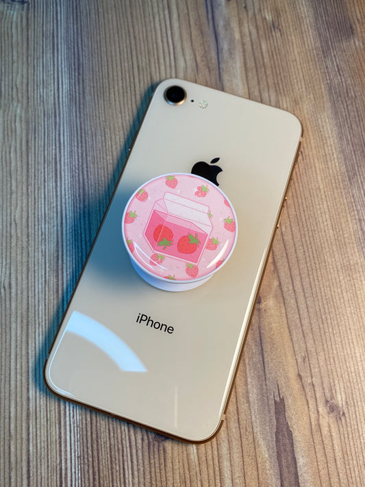 Strawberry Milk Phone Grip Glitter Epoxy Resin