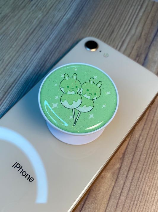 Dango Bunny Matcha Green Phone Grip Glitter Epoxy Resin