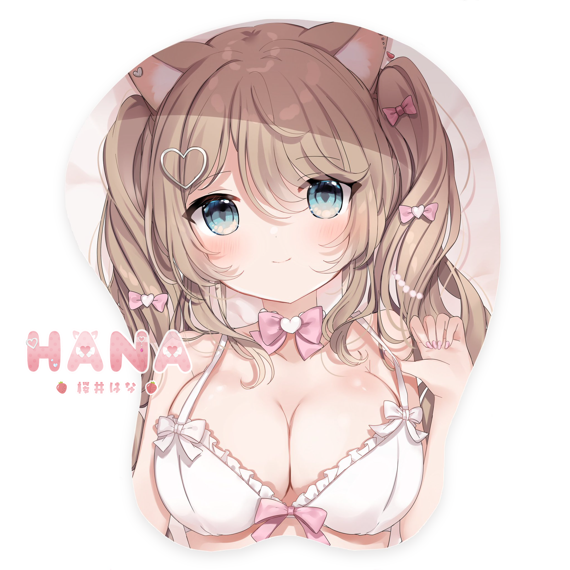 Let Hana’s soft boobas cradle your wrists as you browse the interweb. Y-you can squish if you want.