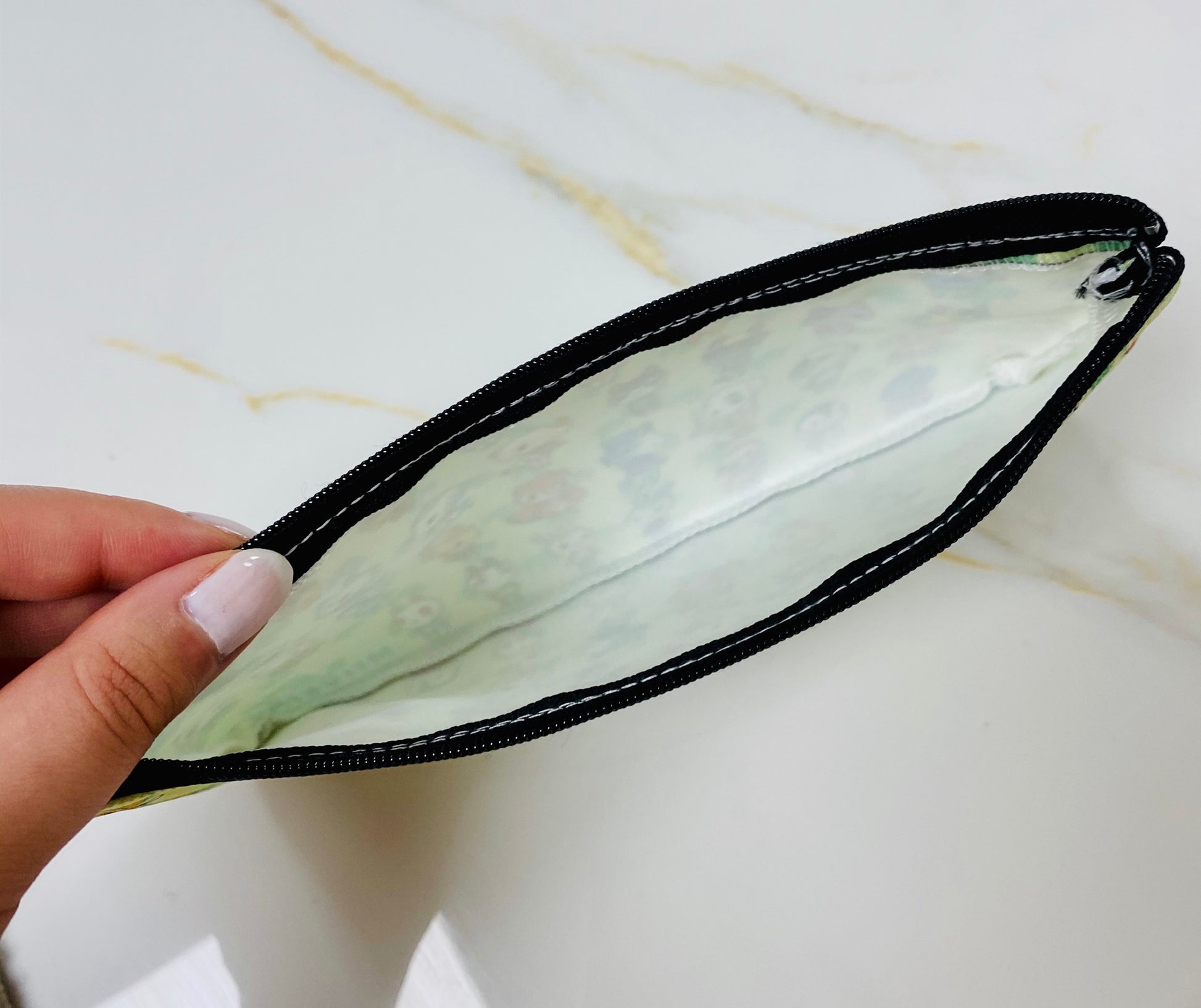 A cute pouch for pencils, pens, brushes, or snacks, or makeup-on-the-go, or anything! It’s not too big so it will fit snugly in your backpack/bag without adding bulk.