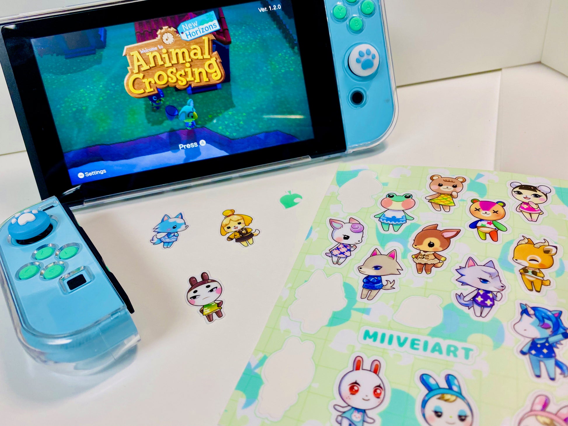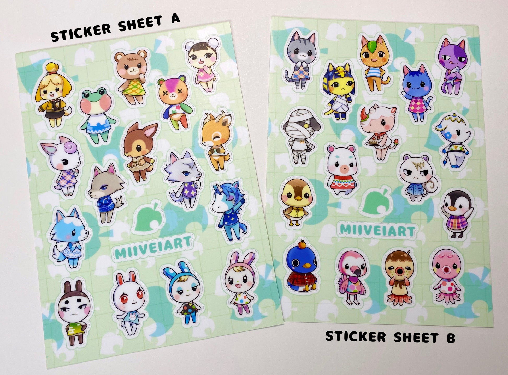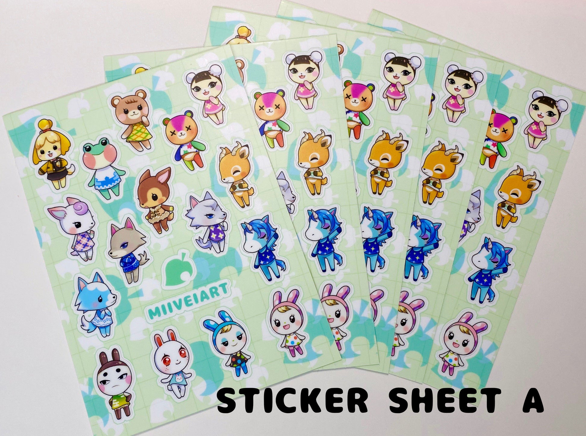 Sticker Sheet A: Isabelle, Lily, Maple, Pekoe, Stitches, Diana, Fauna, Whitney, Fang, Beau, Julian, Skye, Genji, Ruby, Francine, Chrissy.