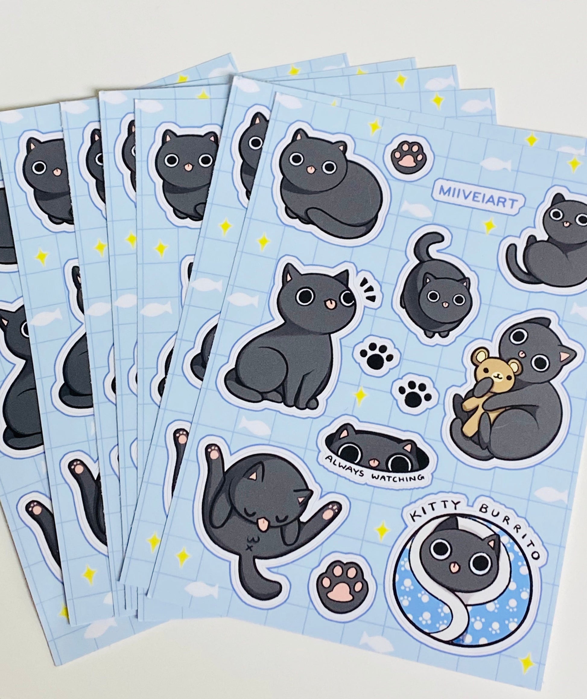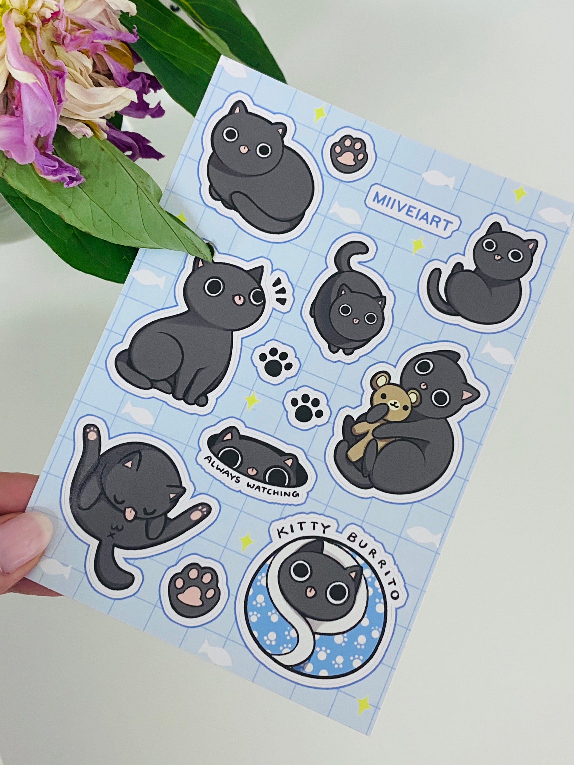 Black Cat Matte Vinyl Stickersheet Waterproof