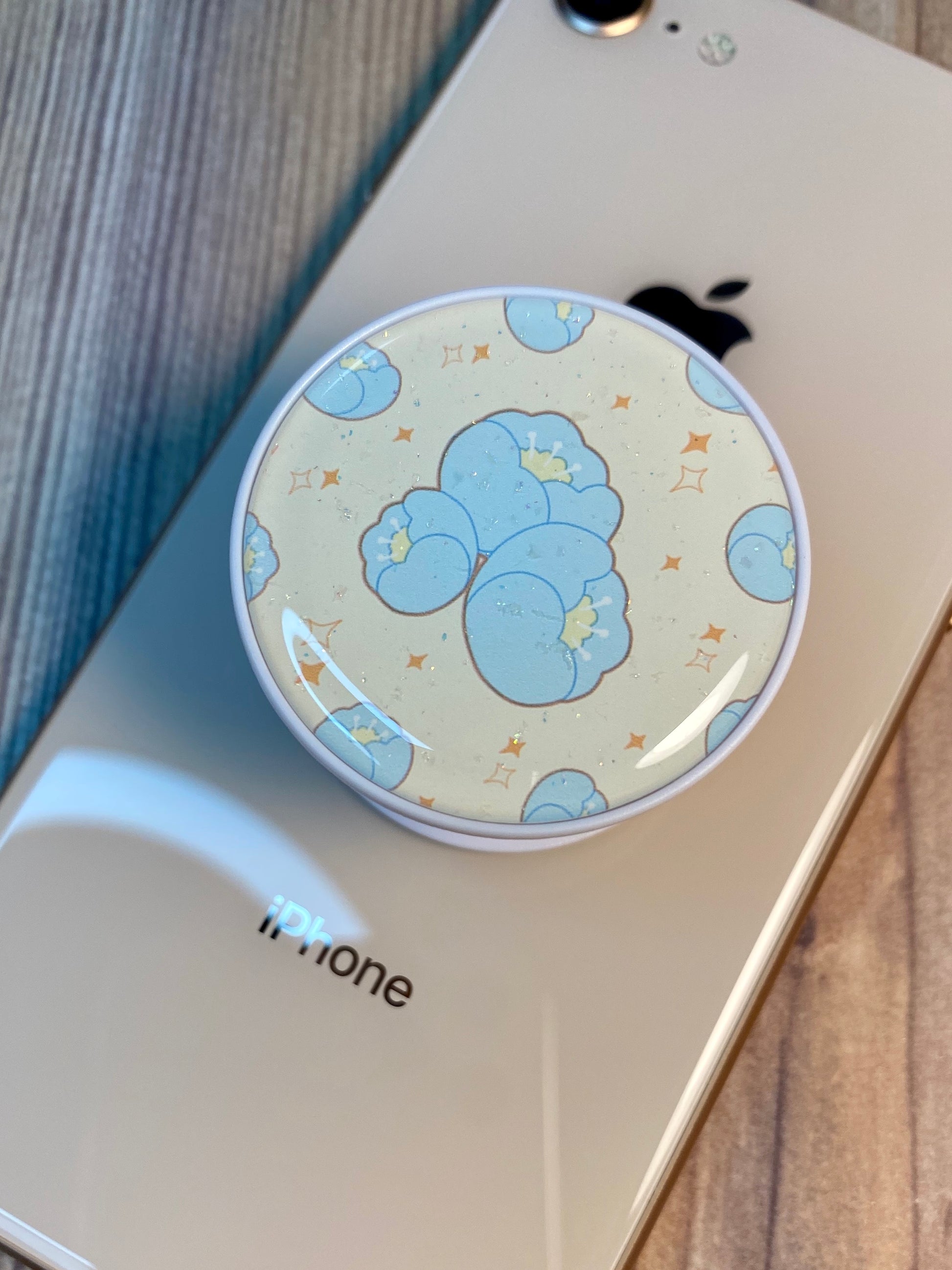Blue Blossom Phone Grip Glitter Epoxy Resin