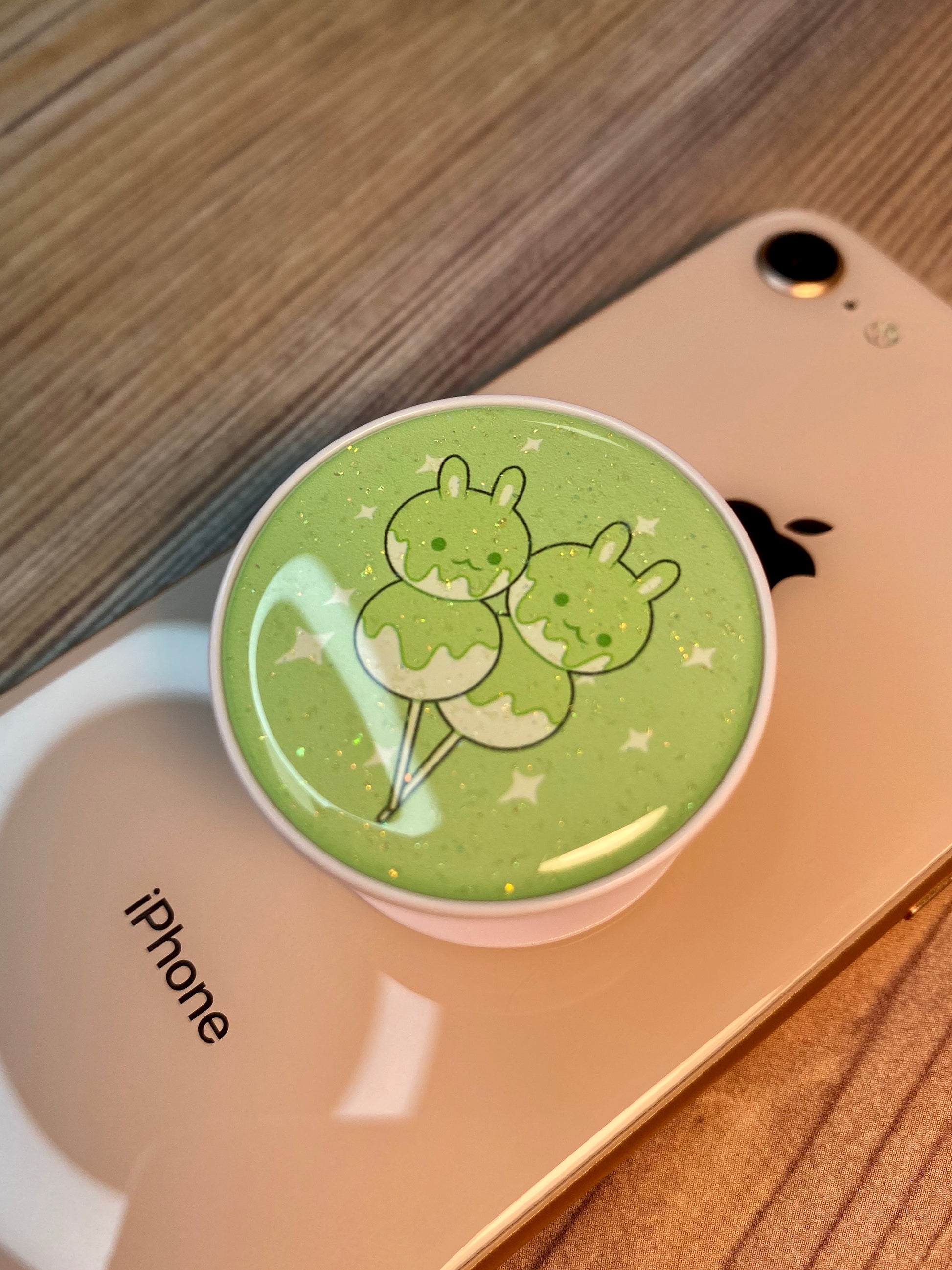 Dango Bunny Matcha Green Phone Grip Glitter Epoxy Resin