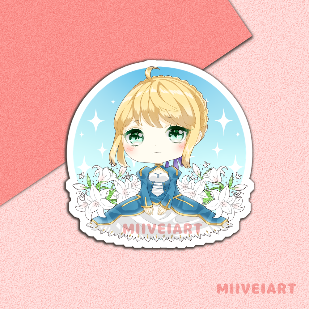 Waterproof and weatherproof vinyl sticker of Jeanne and Saber! It is approximately 3x3 inches.