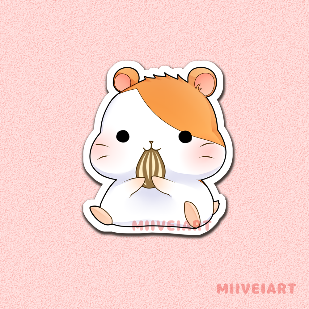 Waterproof and weatherproof vinyl sticker of hamtaro! It is approximately 3x3 inches.