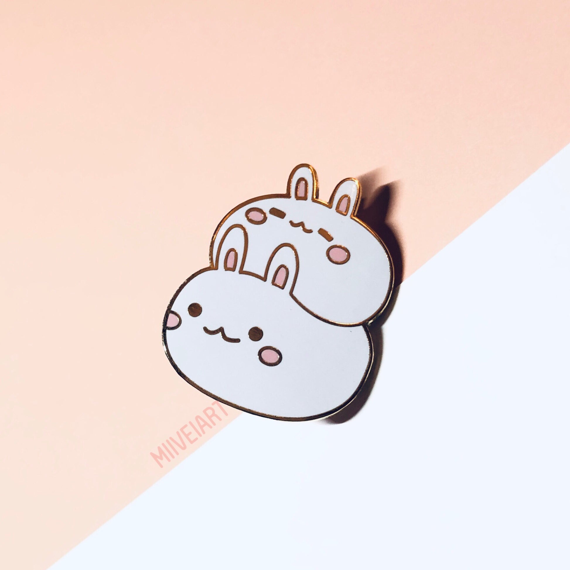 Mochi Bunny Stack Enamel Pin 1.4"