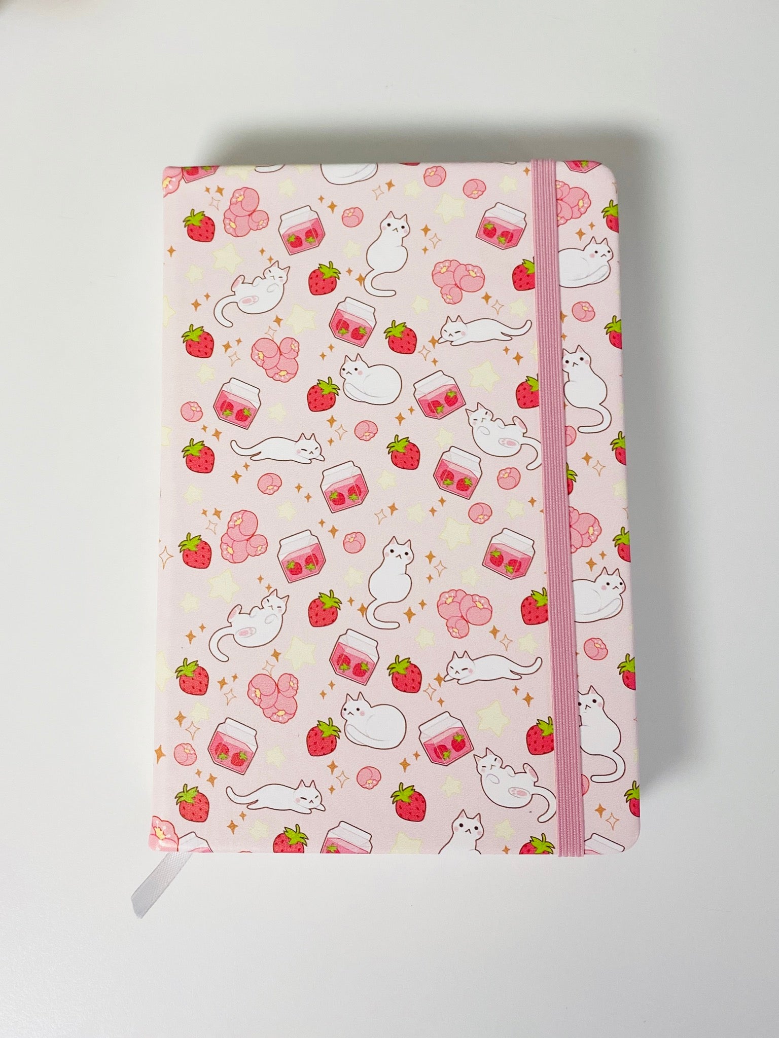 Strawberry Milk and Kitties PU Faux leather Watercolor Sketchbook Blank 300gsm 40sheets/80pages Hard Cover