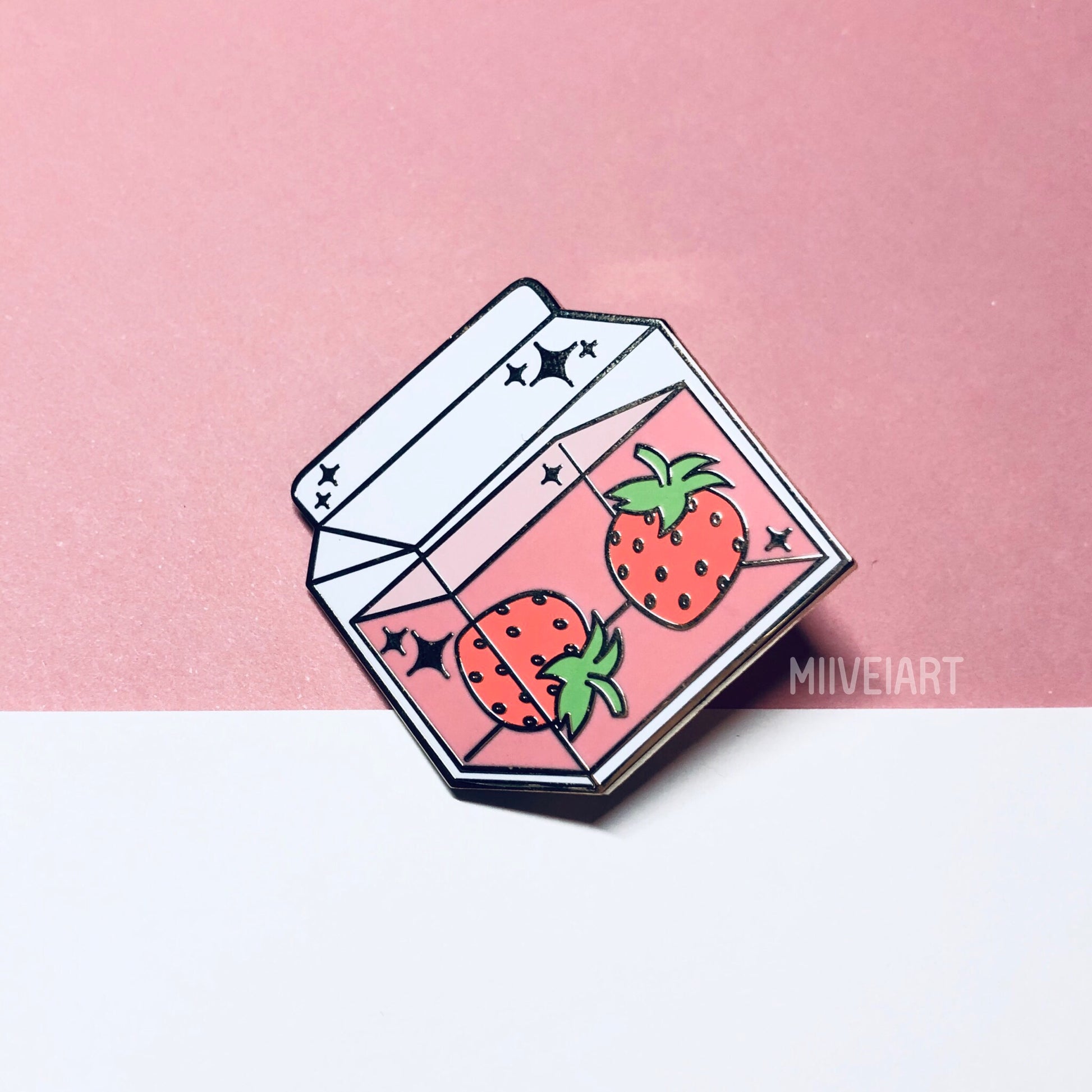 Strawberry Milk Enamel Pin 1.4"