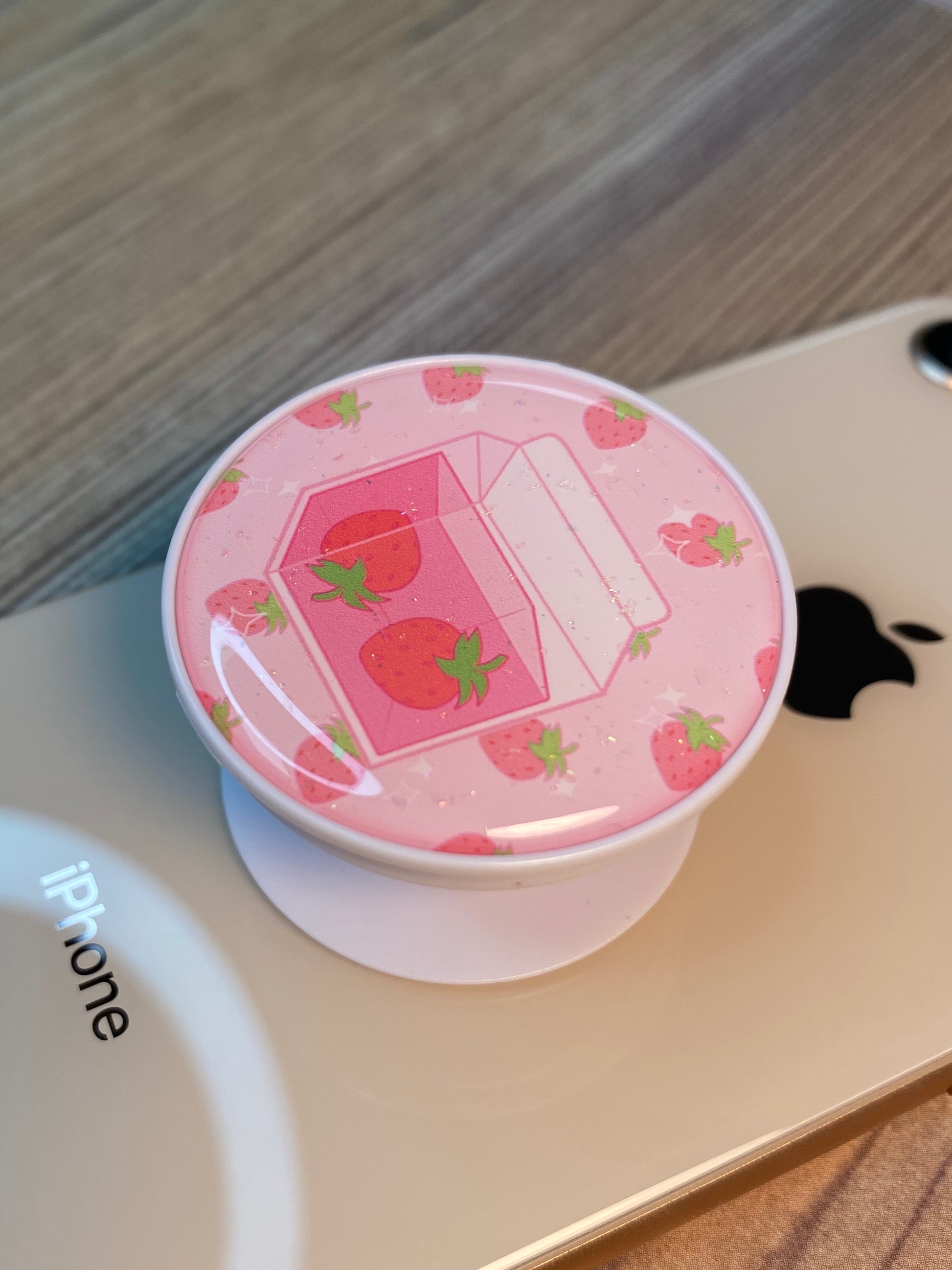 Strawberry Milk Phone Grip Glitter Epoxy Resin